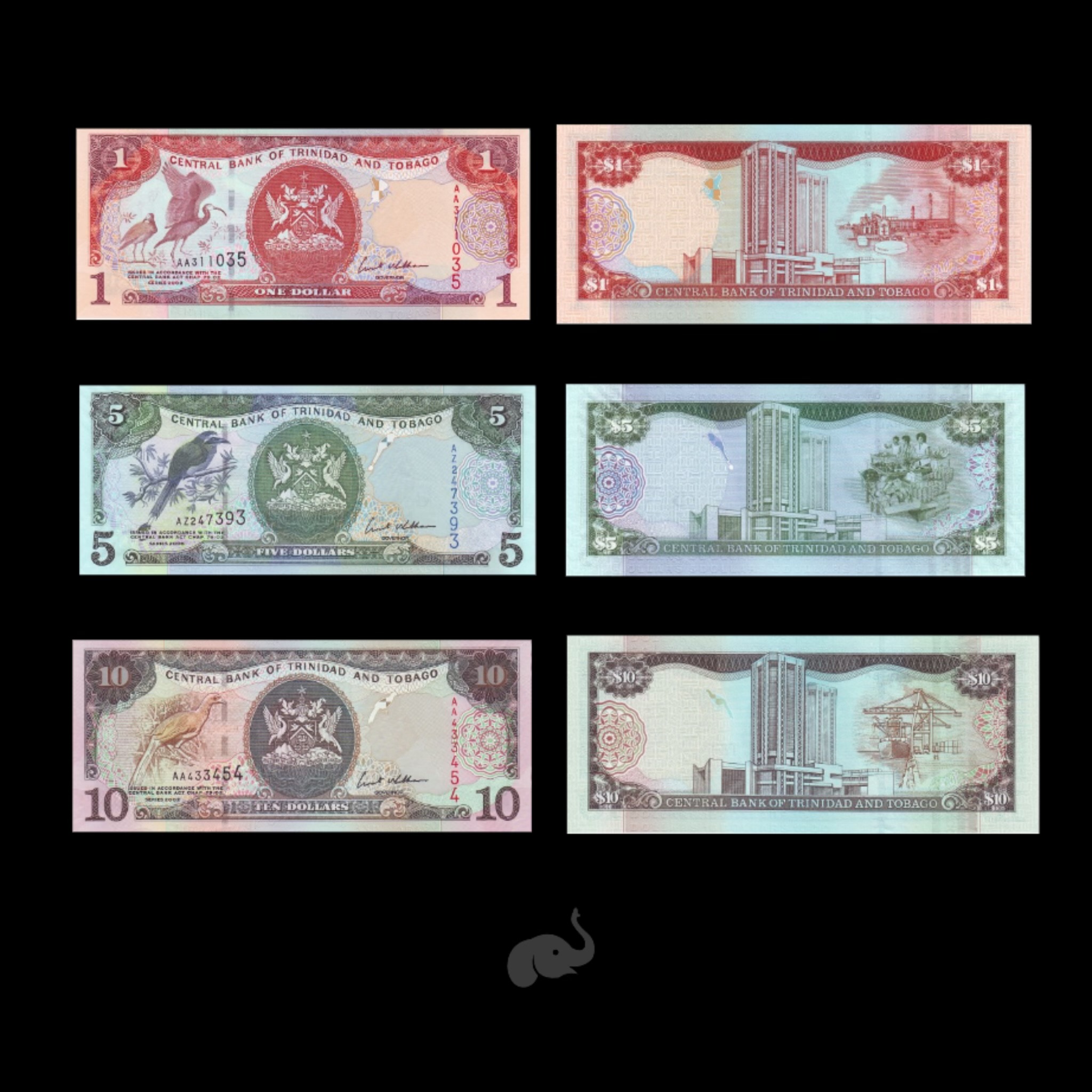 Trinidad & Tobago 1 – 10 Dollars 2002-06 UNC Set of 3
