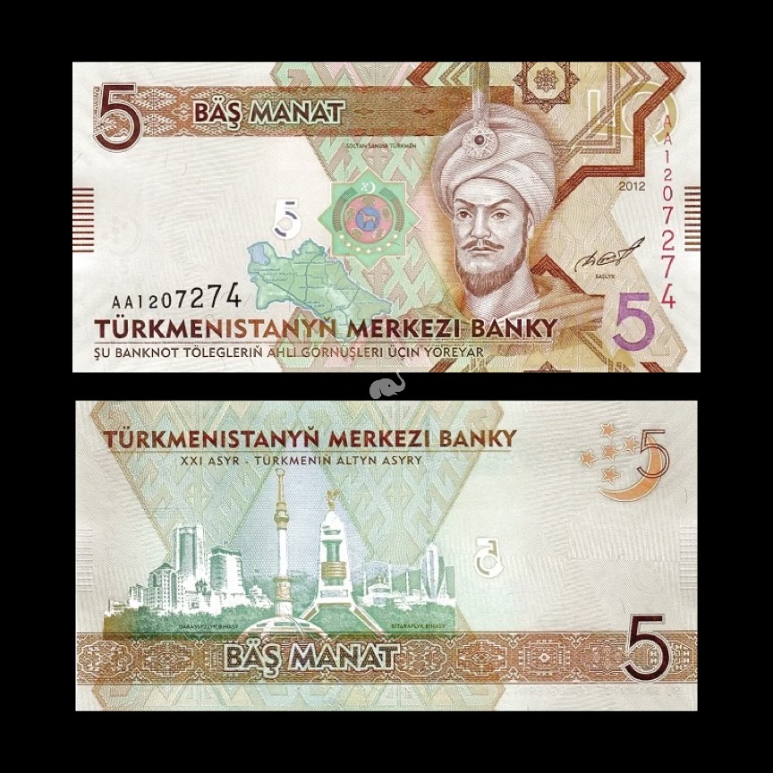 Turkmenistan 5 Manat 2012 P-30 UNC Bank Note