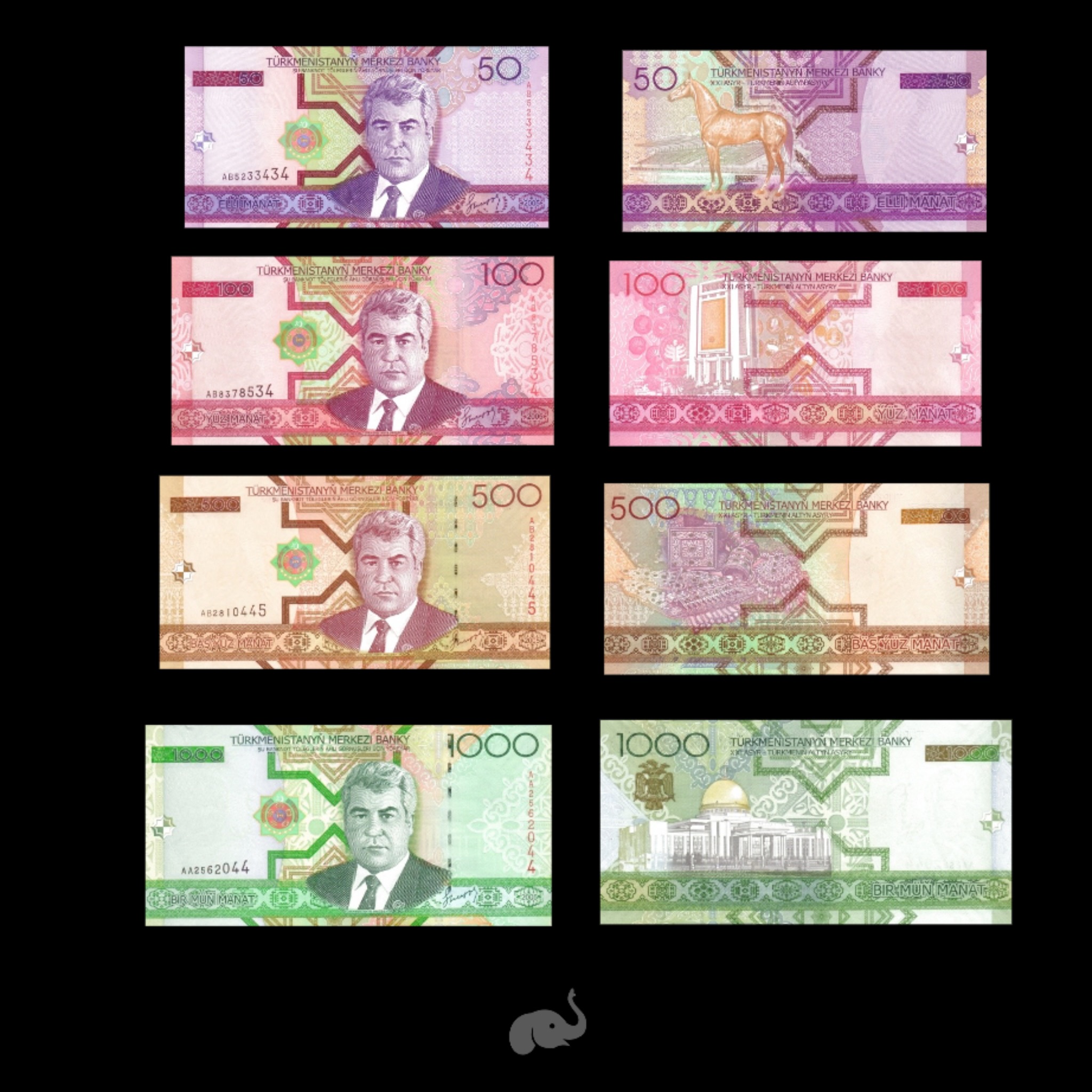 Turkmenistan 50-1000 Manat 2005 UNC set of 4