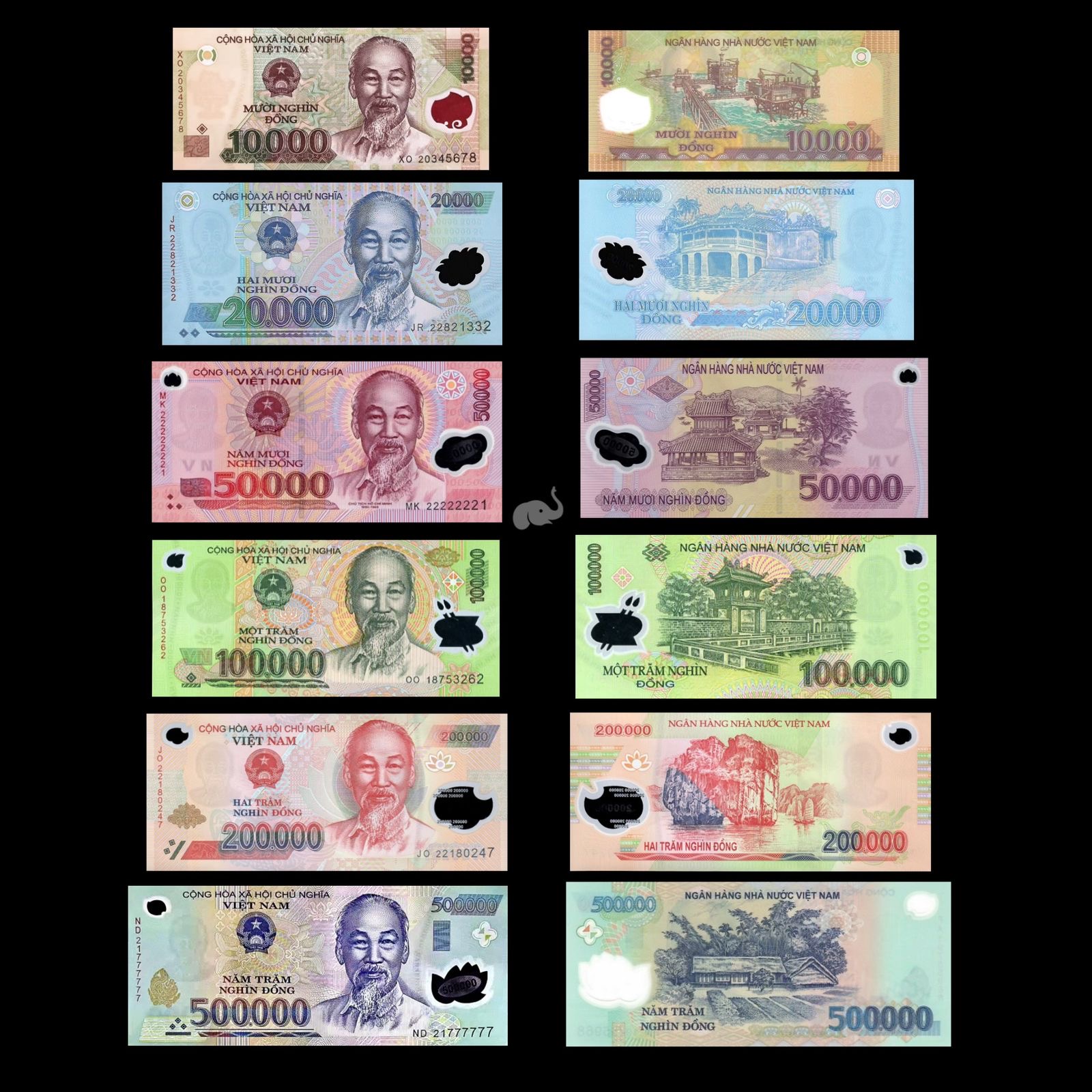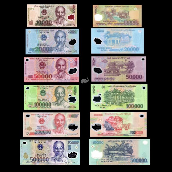 Vietnam 10k-500k Dong 2003-2023 Set of 6 UNC Polymer Bank Note set