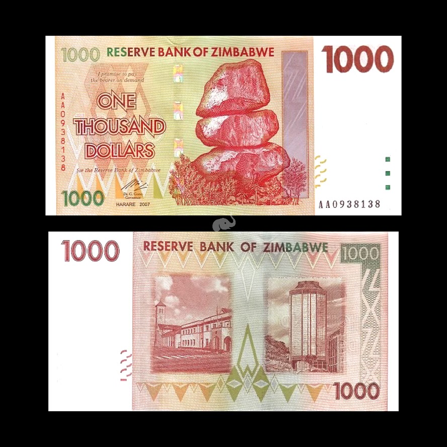 Zimbabwe 1000 Dollars 2007 P-71 UNC Bank Note